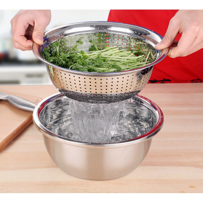 Nhà cửa & Đời sống > Dụng cụ chăm sóc nhà cửa > Chậu, xô & gáo nước || Bộ Thau Rổ Đựng Thực Phẩm INOX 5 Món Không Gỉ, Tiện Lợi Nhiều Kích Thước Khác NhauCòn hàng