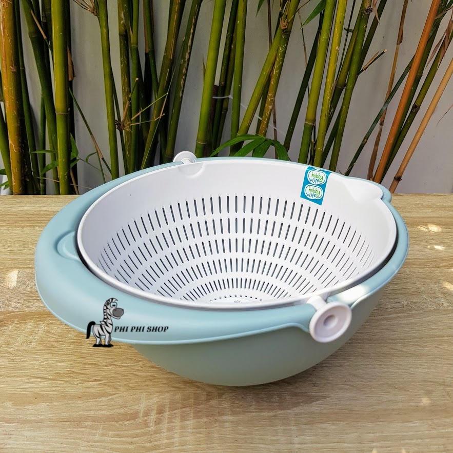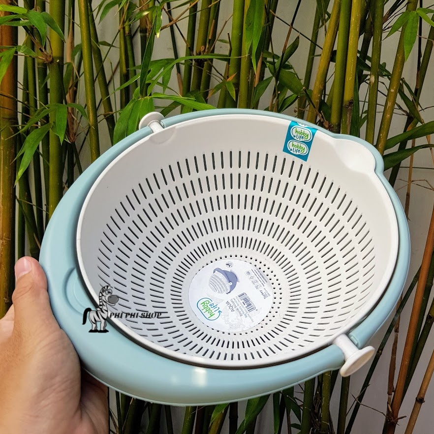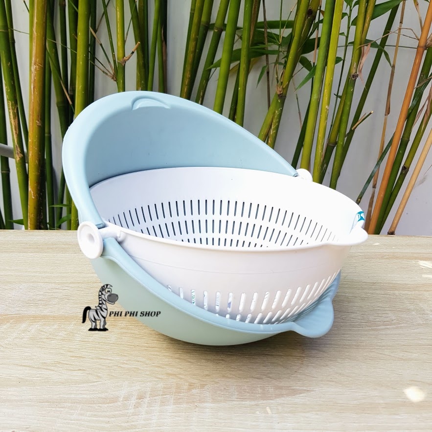 Thiết kế thau rổ đôi với chiếc rổ phía trên có các lỗ nhỏ, tiện lợi khi đựng trái cây, rau củ, giúp thực phẩm ráo nước nhanh chóng.