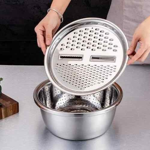 Bộ Thau Rổ inox 3 món bào rau củ đa năng tiện lợi ( BỘ THAO RỖ 3 MÓN )