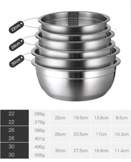 BỘ THAU +RỔ INOX 304Kích thước : 22,26, 30cm