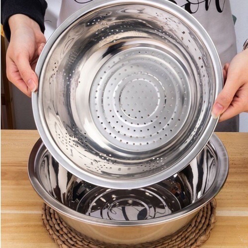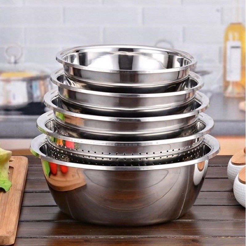 Nhà cửa & Đời sống > Dụng cụ chăm sóc nhà cửa > Chậu, xô & gáo nước || Bộ Thau Rổ Inox 5 Món Tiện DụngCòn hàng