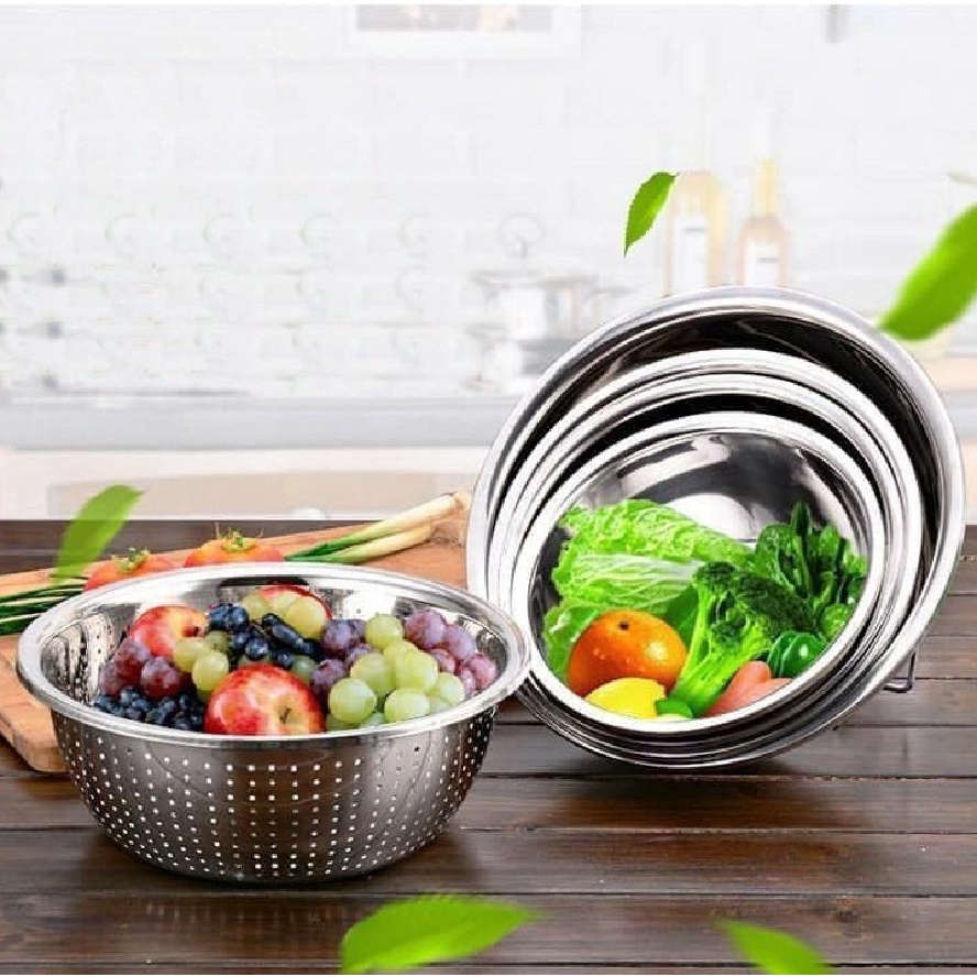 🍆 🍋 🌺 Set 5 thau tô rổ inox cao cấp 🌺🍆 🍋⛔ LƯU Ý VỀ TRẢI NGHIỆM SẢN PHẨM: Hàng GIÁ RẺ, INOX mỏng vừa, 5 món tiết kiệm giá chỉ bằng 1/5 Sản Phẩm trong Siêu Thị / Hãng , Sản Phẩm dùng được bếp Từ nhưng hạn chế và KHÔNG THỂ thay thế NỒI nấu INOX 3-5 đáy chuyên dụng. Chất lượng đi cùng giá tiền . khách lưu ý để chọn mua Sản phẩm dùng đúng mục đích SỬ DỤNG . Shop mong khách hài lòng sản phẩm và tặng shop 5 sao nhé.