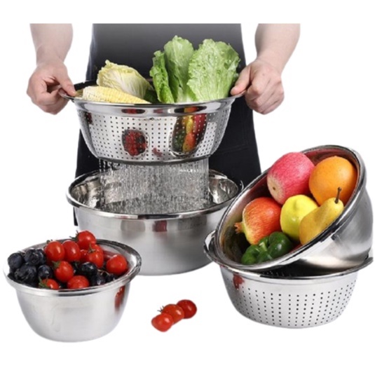Nhà cửa & Đời sống > Bộ đồ bàn ăn > Tô || Thau rổ inox 5in1 - Bộ 5 thau tô rổ inox tiết kiệm tiện lợi 101242Còn hàng