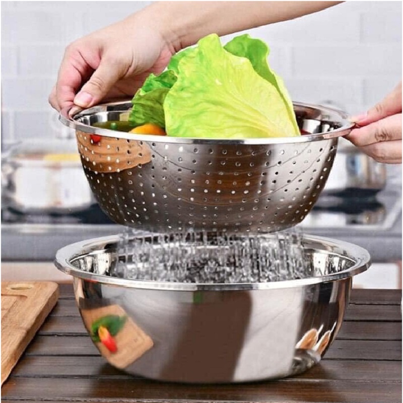 Nhà cửa & Đời sống > Dụng cụ chăm sóc nhà cửa > Chậu, xô & gáo nước || Bộ Thau Rổ Inox Cao Cấp Gồm 5 Món Tiện Dụng Dùng Trong Nhà BếpCòn hàng