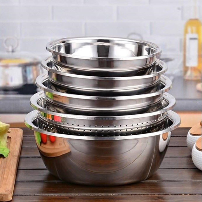 Bộ thau rổ inox nhà bếp 5 món bằng inox đủ kích cỡ