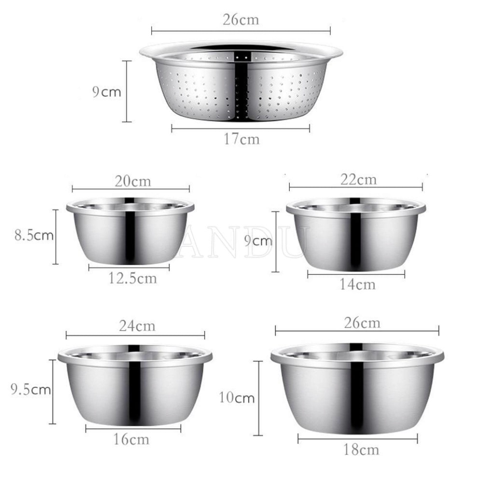 Nhà cửa & Đời sống > Dụng cụ chăm sóc nhà cửa > Chậu, xô & gáo nước || Bộ Thau Rổ Inox Nhà Bếp 5 Món Bằng Inox Đủ Size Từ 18 - 26Cm Tiện Dụng, Dày DặnCòn hàng