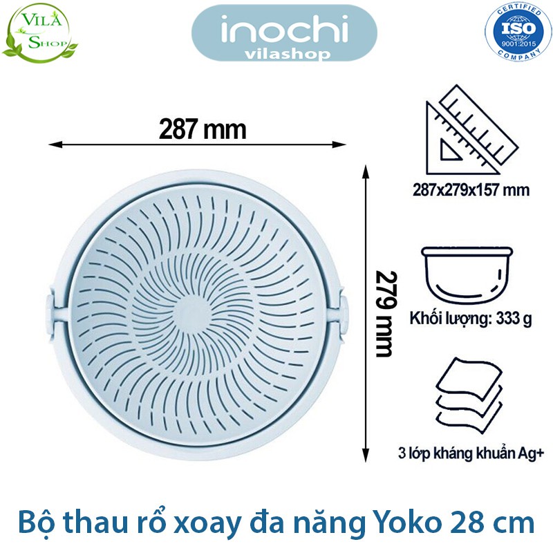 [ Bộ ] Thau Rổ Nhựa, Bộ Thau Rổ Xoay Đa Năng Yoko 28 cm, Chính Hãng Inochi Nhựa PP Nguyên Sinh - Kháng Khẩu - Khử Mùi