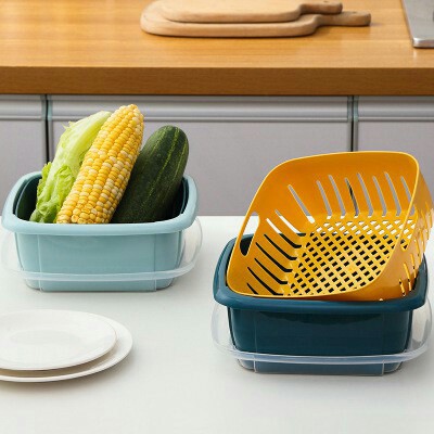 Giới thiệu Bộ Thau Rổ Nhựa Có Nắp Để Thực Phẩm Tủ Lạnh Hộp Nhựa Vuông Bảo Quản Đồ Ăn Để Tủ Lạnh