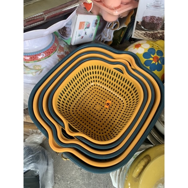 Nhà cửa & Đời sống > Dụng cụ chăm sóc nhà cửa > Chậu, xô & gáo nước || Bộ Thau Rổ Nhựa Tròn-Vuông Vàng Xanh Cao Cấp-có ảnh thậtCòn hàng