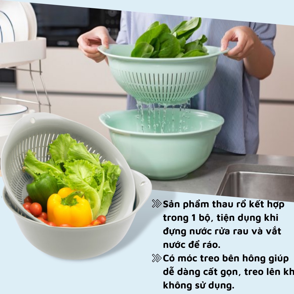 Rổ nhựa kèm thau tròn rửa rau củ quả đựng đồ cao cấp Yoko Inochi Việt Nam Chính hãng