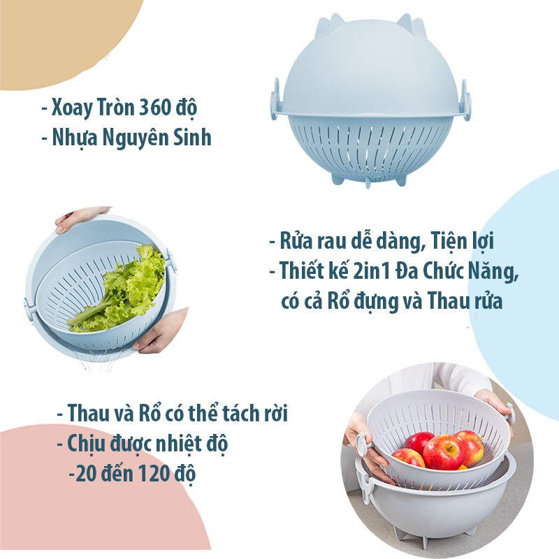 + Bộ thau rổ xoay dùng để đựng hoặc rửa thực phẩm, rau củ quả