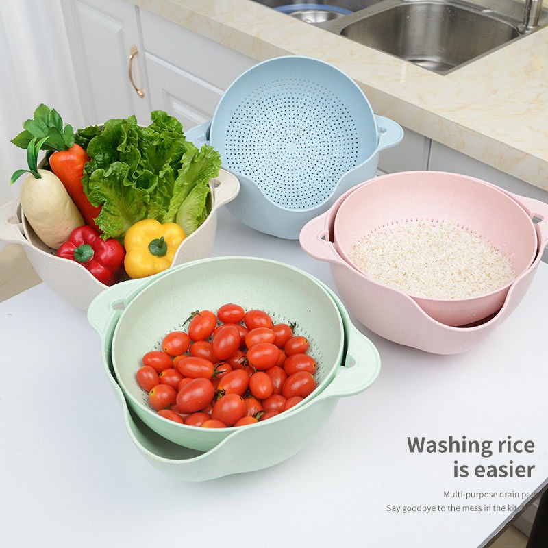 Nhà cửa & Đời sống > Dụng cụ chăm sóc nhà cửa > Chậu, xô & gáo nước || Bộ Thau Rổ Rửa Trái Cây, Rau Củ Đa Tầng Bằng Nhựa Lúa Mạch Nhiều MàuCòn hàng