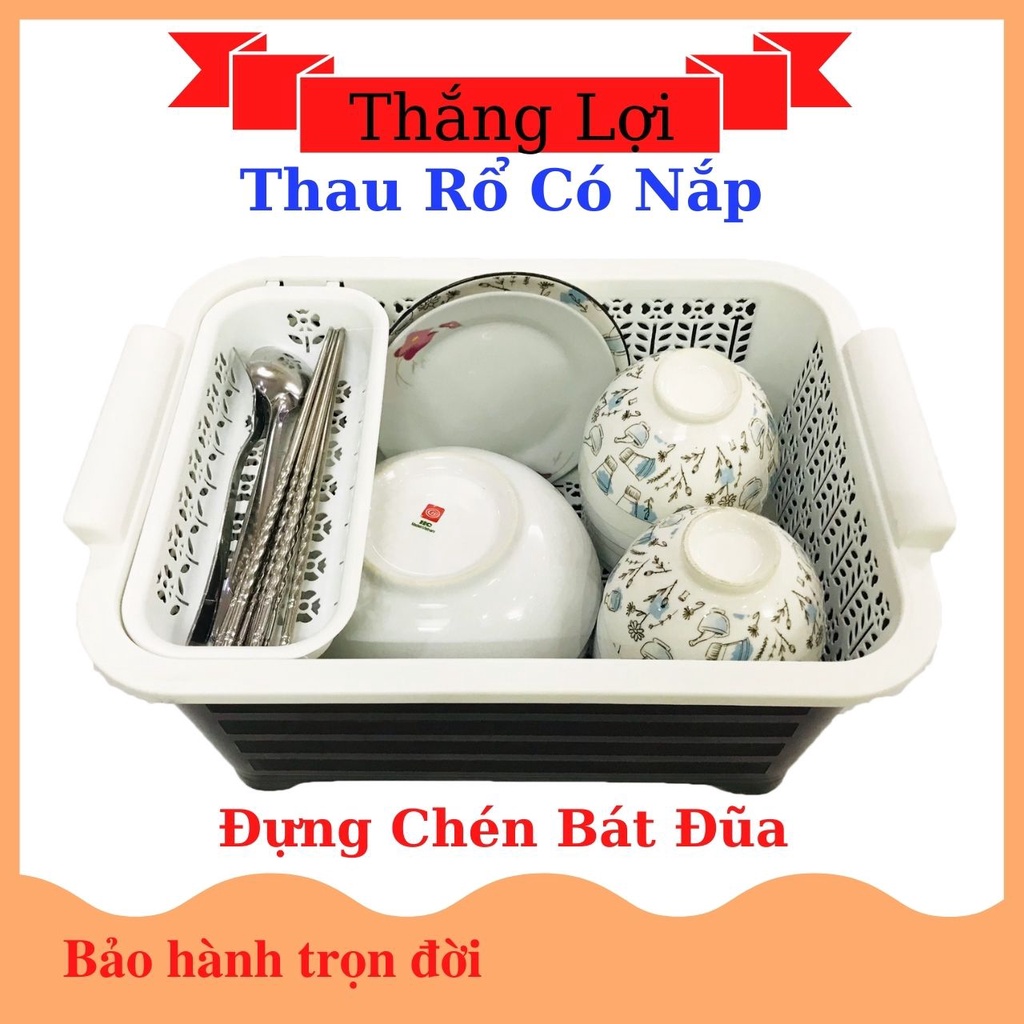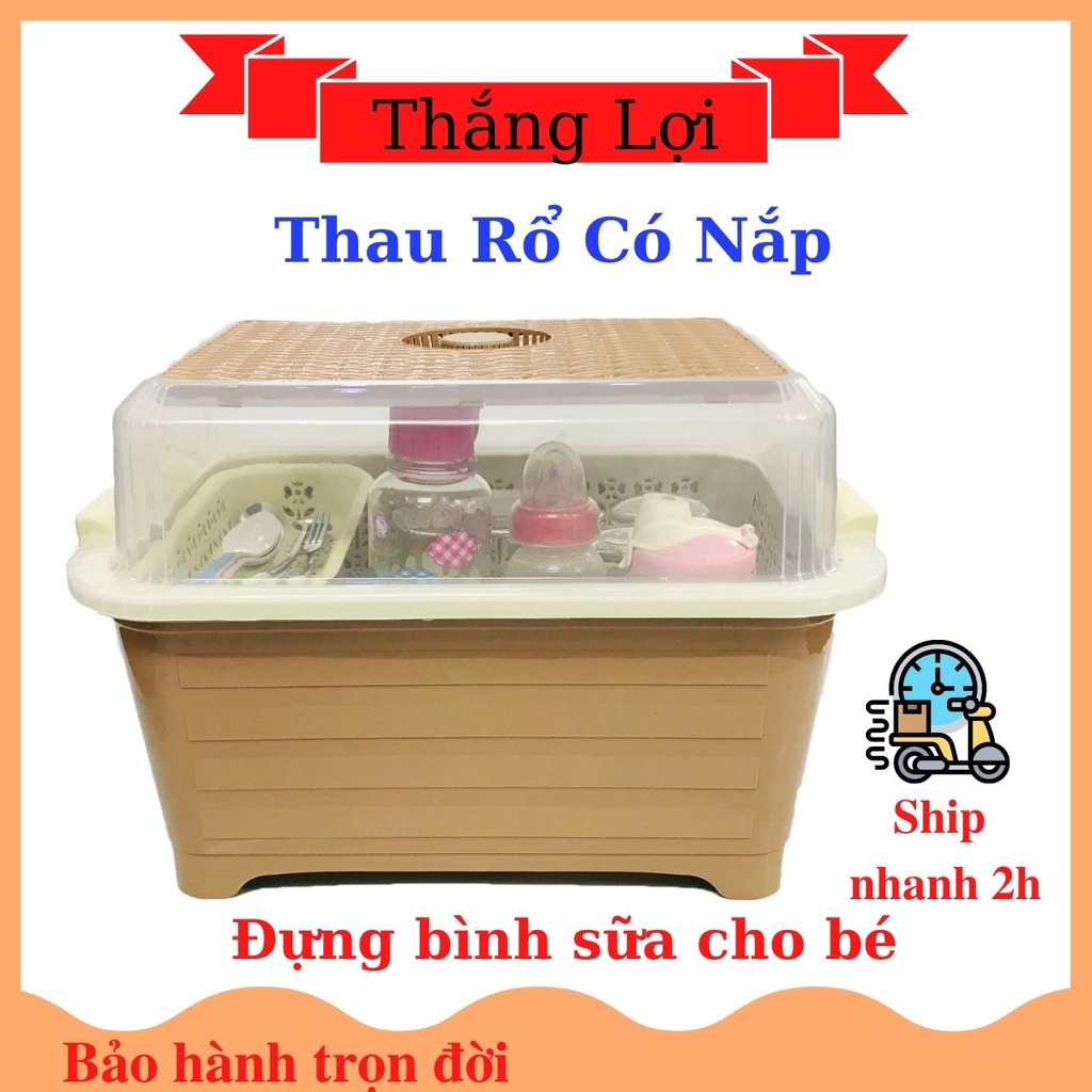 Thau Rổ Úp Chén Bát Dĩa, Úp Bình Sữa Cho Bé Có Nắp Nhựa Thắng Lợi 40x29.5x27.5cm