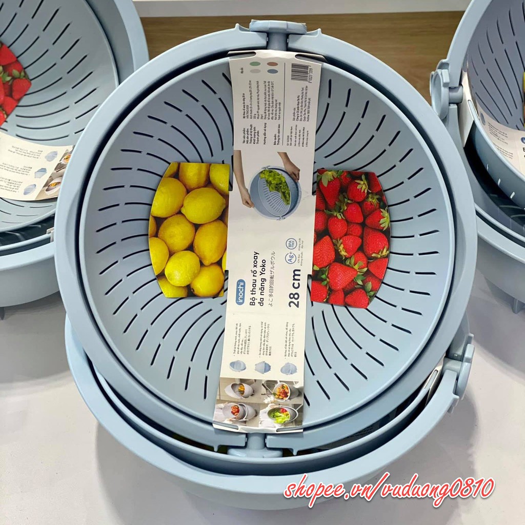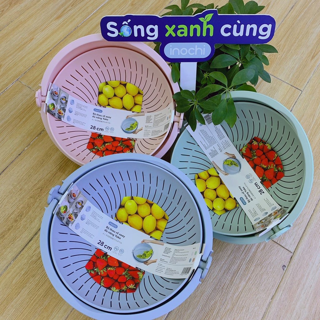 Nhà cửa & Đời sống > Dụng cụ chăm sóc nhà cửa > Chậu, xô & gáo nước || Bộ thau rổ xoay đa năng Inochi 28cm - ion Ag+ kháng khuẩnCòn hàng