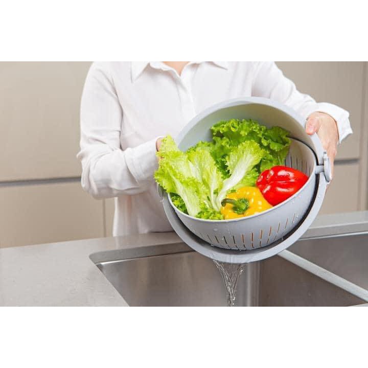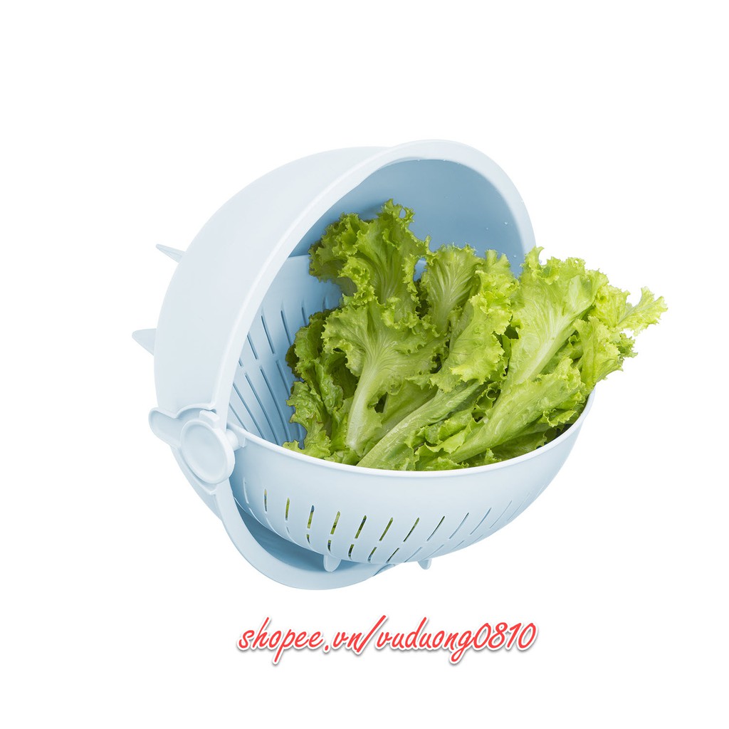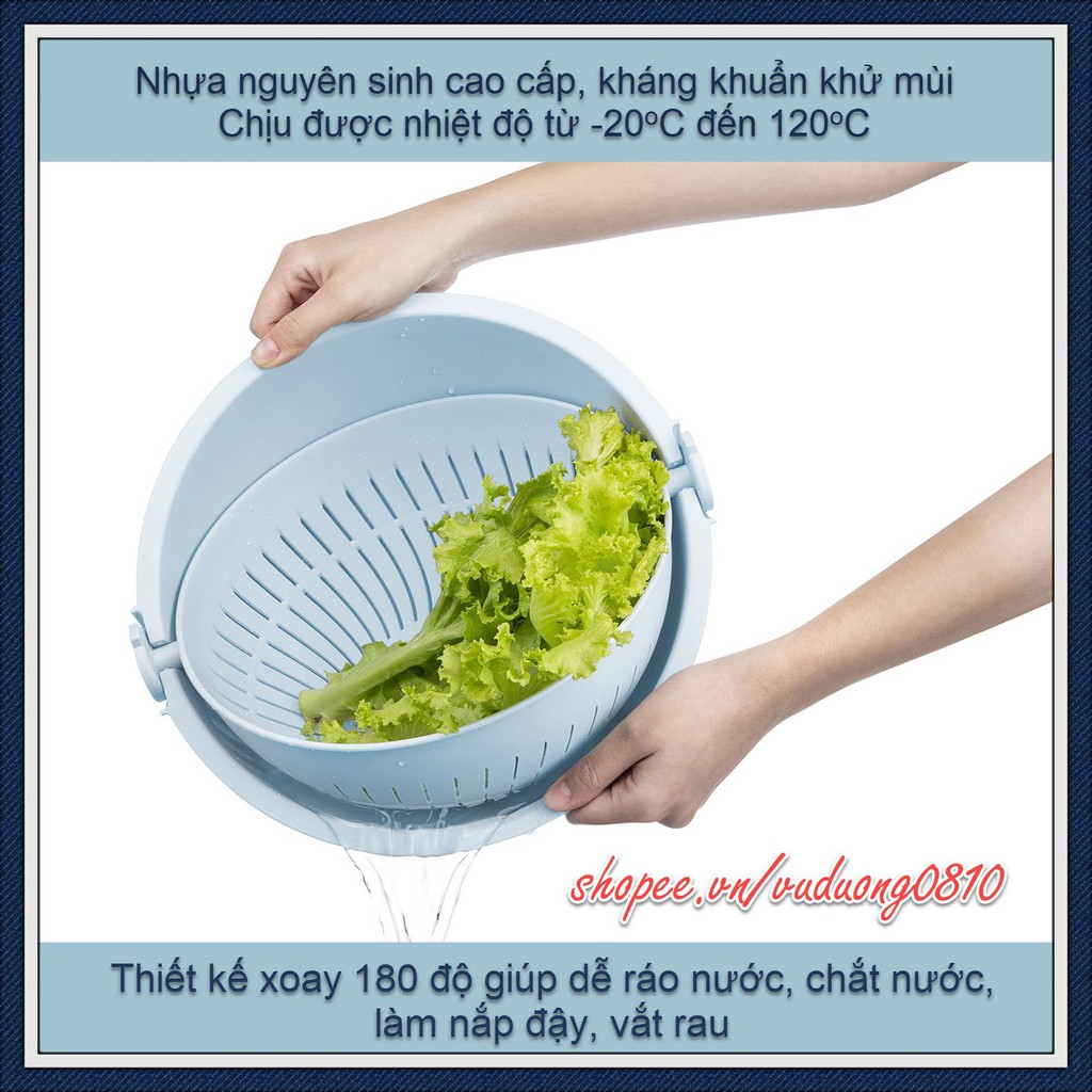 • Thiết kế xoay 180 độ giúp dễ ráo nước, chắt nước, làm nắp đậy, vắt rau