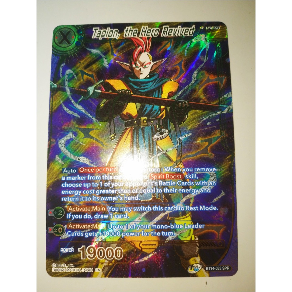 Thẻ bài Dragonball - TCG - Tapion, the Hero Revived - Độ hiếm Special Rare - Thuộc hộp bài Cross SpiritSản phẩm chính hãng Konami. Hoàn tiền 100% nếu sản phẩm không như miêu tả'