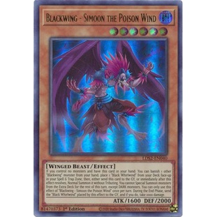Thẻ bài Yugioh - TCG - Blackwing - Simoon the Poison Wind - Độ hiếm Ultra rare - Thuộc tộc bài BlackwingSản phẩm chính hãng Konami'