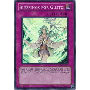 Thẻ bài Yugioh - TCG - Blessings for Gusto - Độ hiếm Super rare - Thuộc tộc bài GustoSản phẩm chính hãng Konami. Hoàn tiền 100% nếu sản phẩm không như miêu tả'