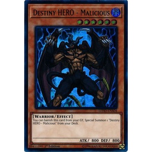 Thẻ bài Yugioh - TCG - Destiny HERO – Malicious (UR) - Độ hiếm Ultra Rare - Thuộc tộc bài Destiny HeroSản phẩm chính hãng Konami. Hoàn tiền 100% nếu sản phẩm không như miêu tả'