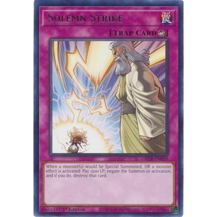 Thẻ bài Yugioh - TCG - Solemn Strike - Độ hiếm Rare 1st Edition - Thuộc Booster Grand CreatorsSản phẩm chính hãng Konami. Hoàn tiền 100% nếu sản phẩm không như miêu tả'