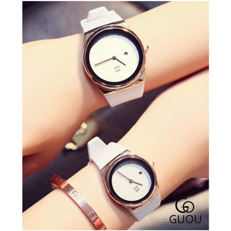 Giới thiệu (Thẻ bảo hành 12 tháng) Đồng hồ nữ Guou 8160, tặng box, thẻ bảo hành 12 tháng, dây silicon