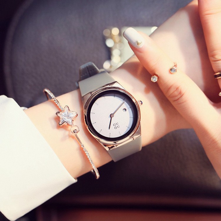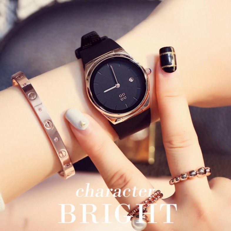 (Thẻ bảo hành 12 tháng) Đồng hồ nữ Guou 8160, tặng box, thẻ bảo hành 12 tháng, dây silicon