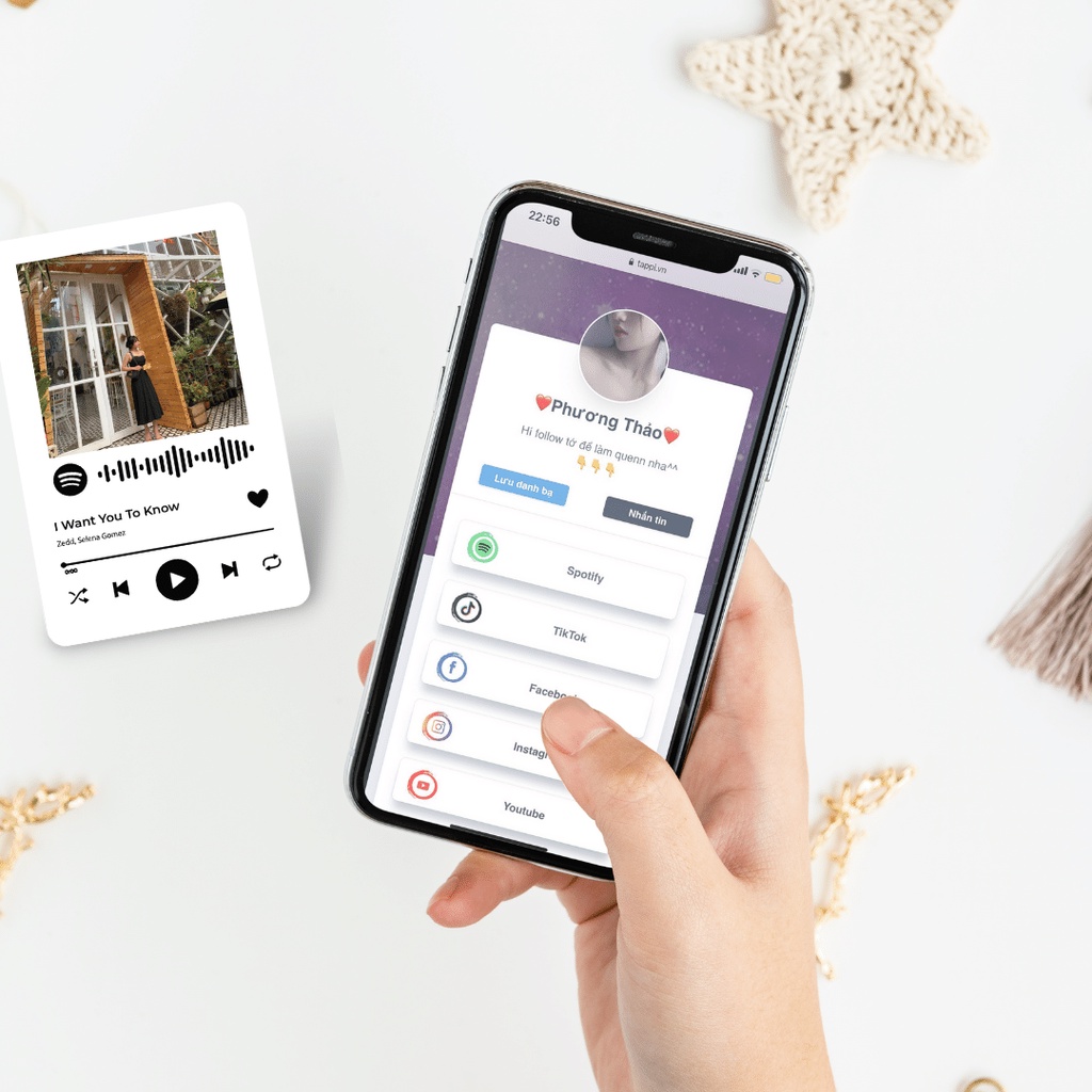Thẻ cá nhân thông minh Tappi Spotify - Món quà công nghệ thú vịTappi là sản phẩm công nghệ hàng đầu tại Việt Nam dùng để chia sẻ các trang mạng xã hội và thông tin liên lạc cá nhân, những bài nhạc mình yêu thích một cách nhanh chóng và hiệu quả nhất chỉ với 1 lần CHẠM