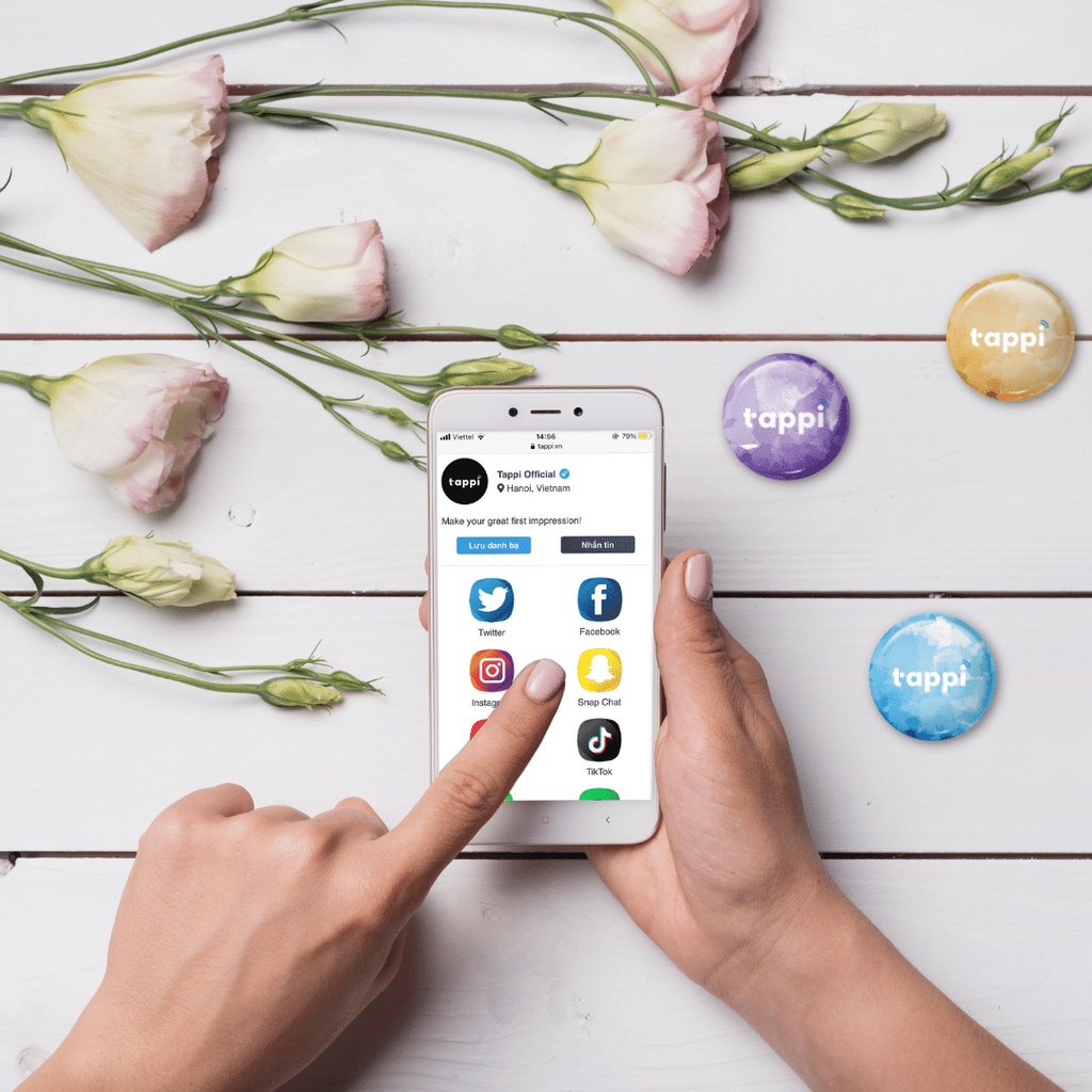 Tappi là sản phẩm công nghệ hàng đầu tại Việt Nam dùng để chia sẻ các trang mạng xã hội và thông tin liên lạc cá nhân một cách nhanh chóng và hiệu quả nhất chỉ với 1 lần CHẠM