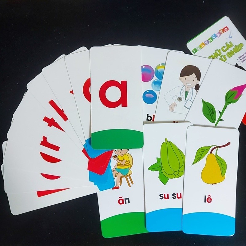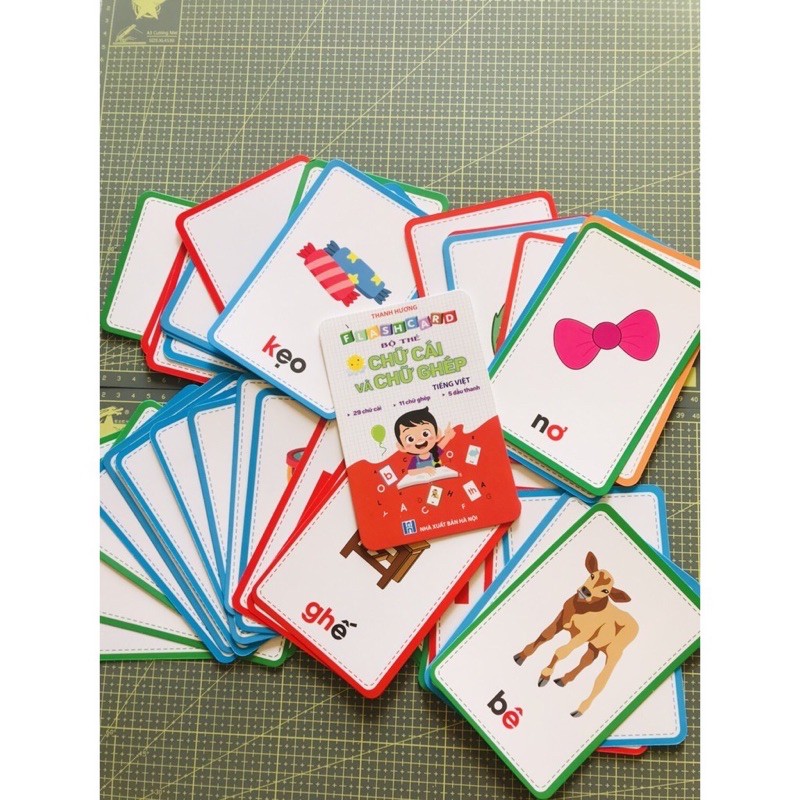bộ thẻ flashcard chữ ghép chữ cái chữ số cho bé học tiếng việt khổ lớn 10x15 cm