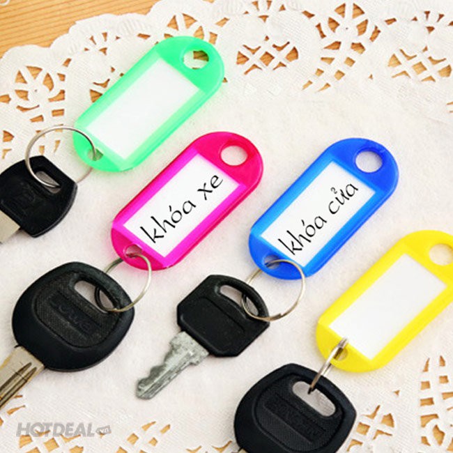 - Phía đầu thẻ có thiết kế khoen đeo tiện lợi, bề mặt thẻ thiết kế lớp nhựa trong suốt chống trầy, chống nước, thuận tiện cho bạn ghi chú tên chìa khóa.