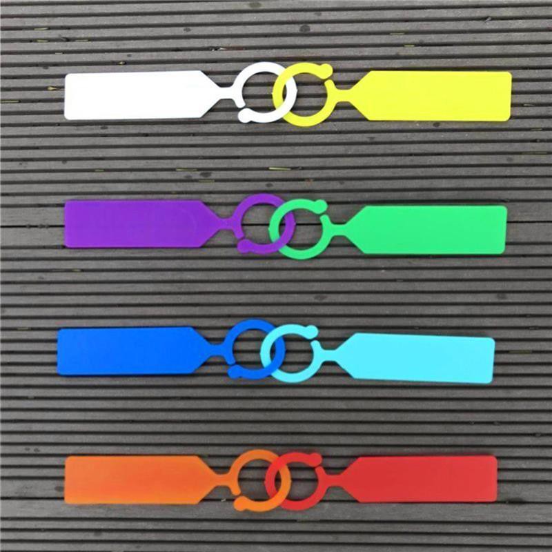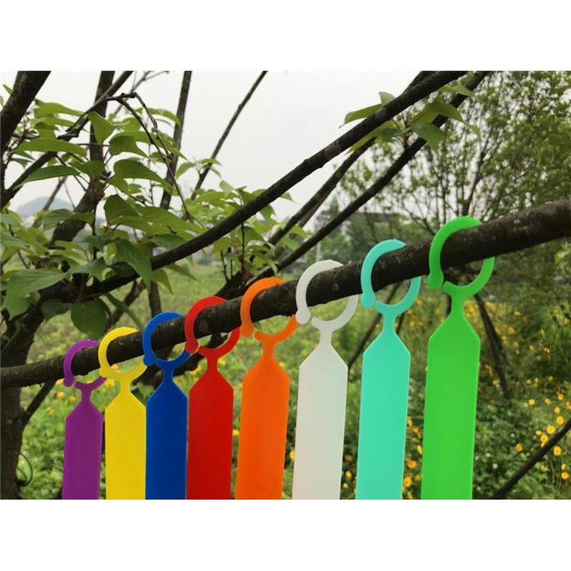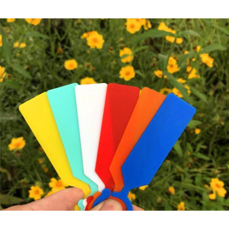 Thẻ ghi tên cây, đánh dấu đồ vật làm bằng nhựa có móc treo:Màu sắc: Trắng, Vàng, Xanh lá, Đỏ, Xanh dương, Cam, Tím
