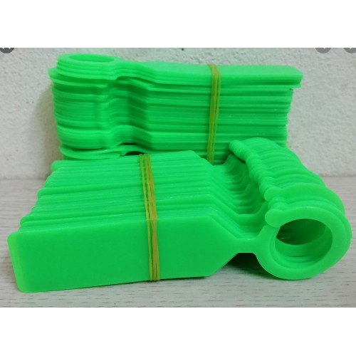 Làm bằng nhựa, có móc cong dùng để móc treo, phần còn lại dùng để ghi chú tên.