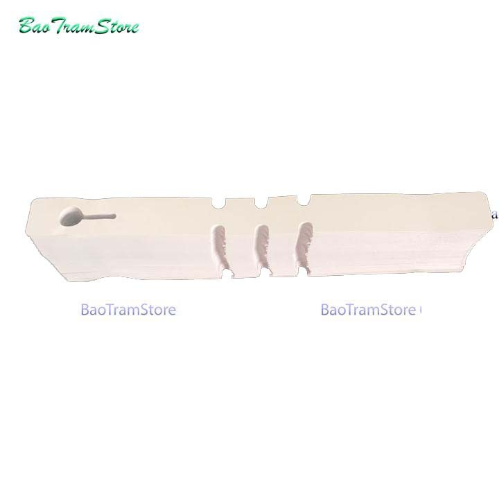 Làm bằng nhựa màu trắng, dài 11cm, rộng 2cm, một đầu đục lỗ dùng để móc treo, phần còn lại dùng để ghi chú tên.