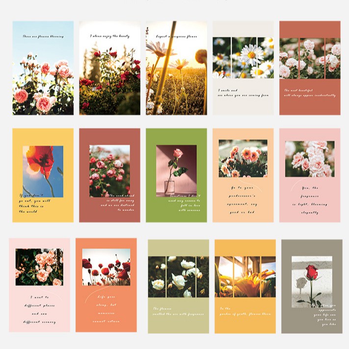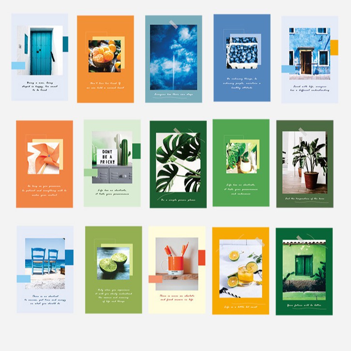 Bộ 15 thẻ ảnh, thẻ giấy, post card trang trí phòng.Màu ảnh sắc nét với nhiều phong cách dùng dán tường, sách, viết nhật ký, trang trí phòng....