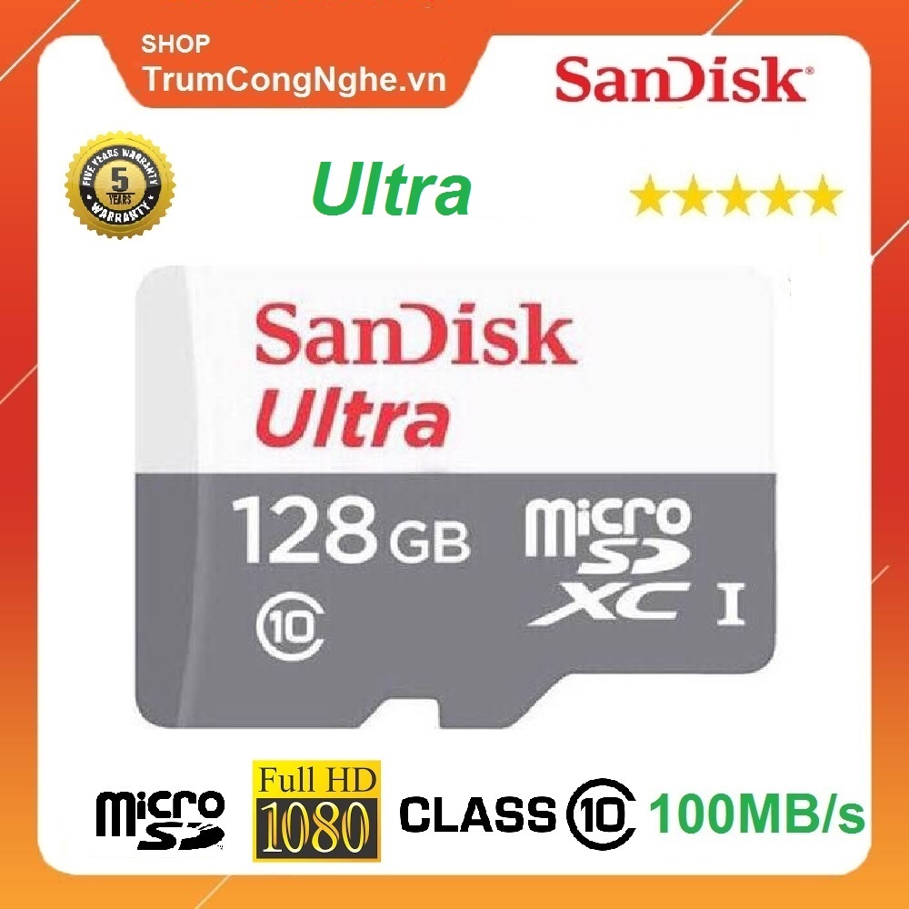 Điện Thoại & Phụ Kiện > Phụ kiện > Thẻ nhớ || Thẻ nhớ 128GB MicroSD Sandisk Utral class10 100Mb/s - Tốc độ siêu caoCòn hàng