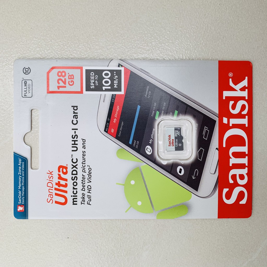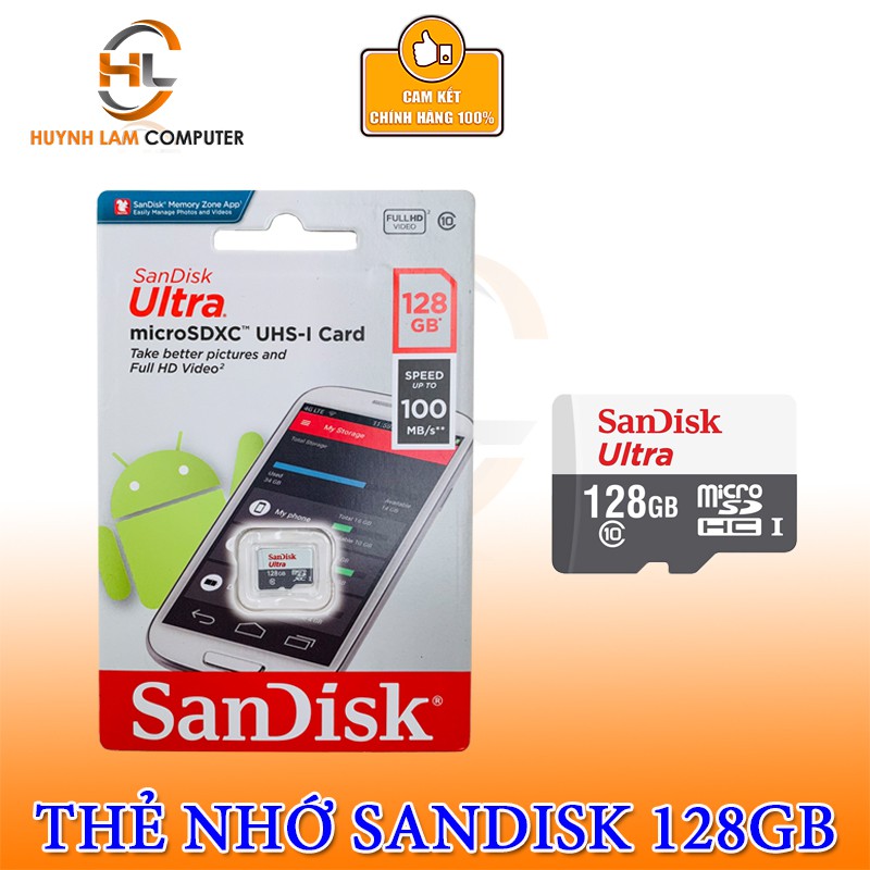 Điện Thoại & Phụ Kiện > Phụ kiện > Thẻ nhớ || Thẻ nhớ 128GB Sandisk MicroSDXC Ultra 100MB/s Chính hãng FPT Phân PhốiCòn hàng