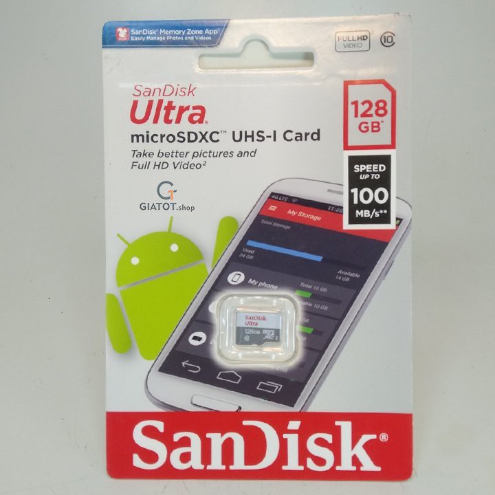 Giới thiệu Thẻ nhớ 128Gb SanDisk Ultra Class 10 100Mb/s chính hãng
