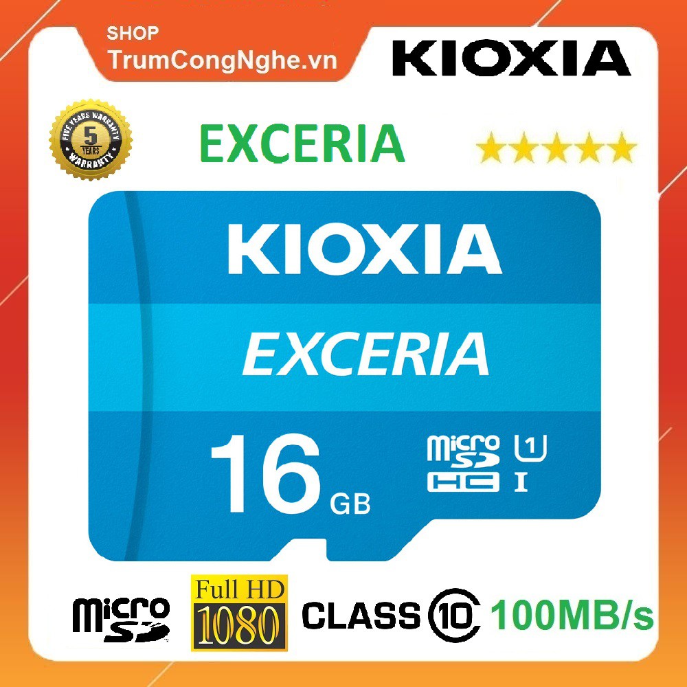 Điện Thoại & Phụ Kiện > Phụ kiện > Thẻ nhớ || Thẻ nhớ 16GB KIOXIA (Toshiba) Exceria microSDHC Class10 100MB/s Tốc Độ CaoCòn hàng