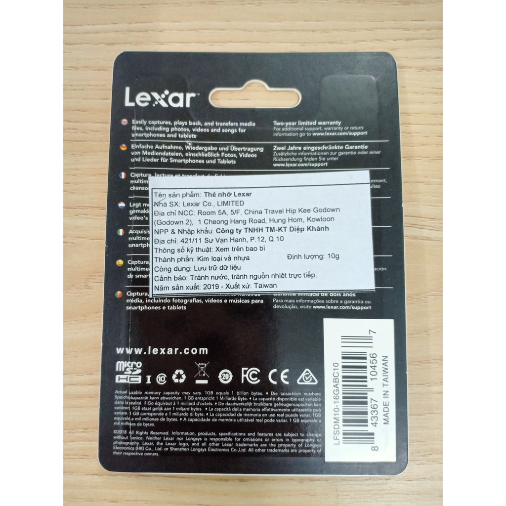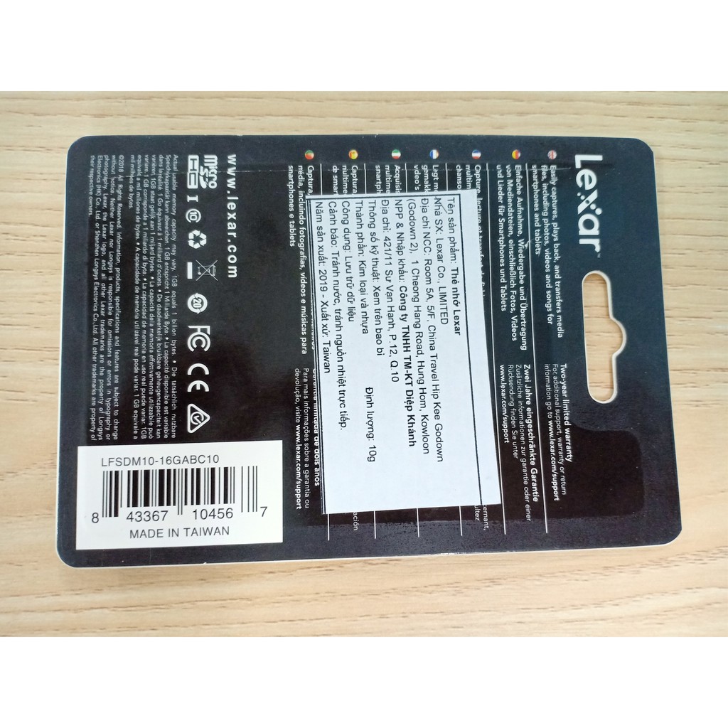 Thẻ nhớ 16GB Micro SDHC C10 LEXAR (không kèm Adapter)