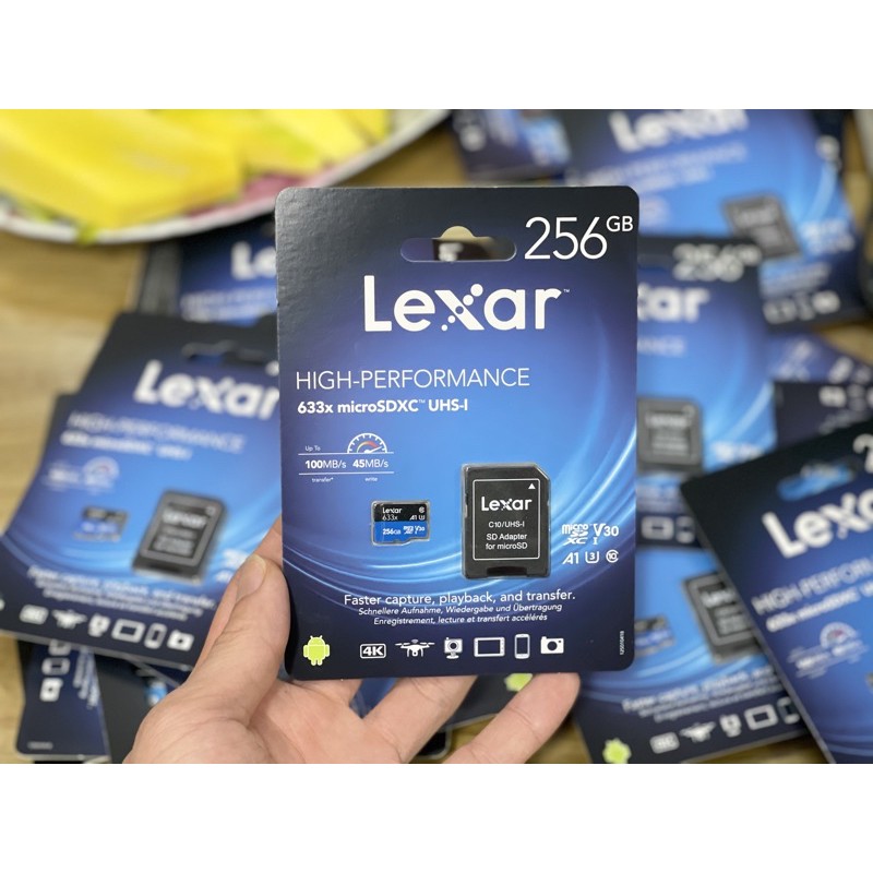 Thẻ nhớ 256GB Lexar 633x micro SDXC UHS-l V30 -100MB/s / Tặng kèm áo thẻ