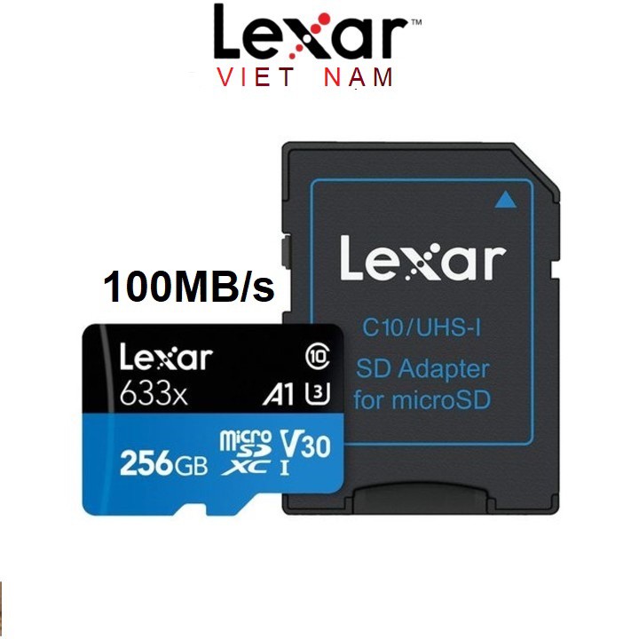 Thẻ nhớ 256GB Lexar 633x micro SDXC UHS-l V30 -100MB/s / Tặng kèm áo thẻ✪ Sản phẩm chính hãng Lexar do Mai Hoàng phân phối (Maihoang.com.vn)
