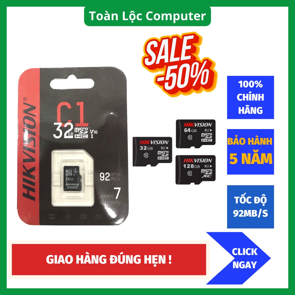 Điện Thoại & Phụ Kiện > Phụ kiện > Thẻ nhớ || Thẻ Nhớ 32GB 64GB 128GB HIKVISION CLASS 10 micro sd cho điện thoại máy ảnh chính hãng bảo hành 5 nămCòn hàng