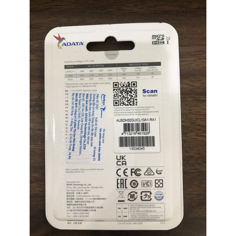 Giới thiệu Thẻ nhớ 32GB ADATA UHS-I MICRO SD CLASS10 - Bảo hành 5 năm - Cam kết Chính hãng