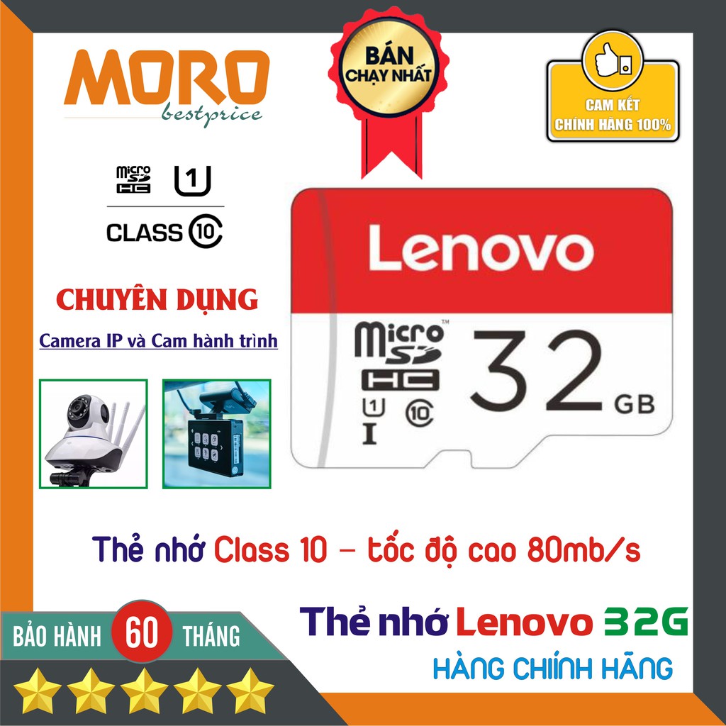 Thẻ nhớ Micro SD Lenovo 32GB - Class 10 - Là sản phẩm chất lượng cao Chuyên dụng cho CAMERA , điện thoại, máy tính bảng, .v...v....- Chuẩn Class 10, UHS-I ( đăc biệt biệt đối với thẻ 64GB là UHS-I U3), tốc độ đọc lên tới 80MB/s;