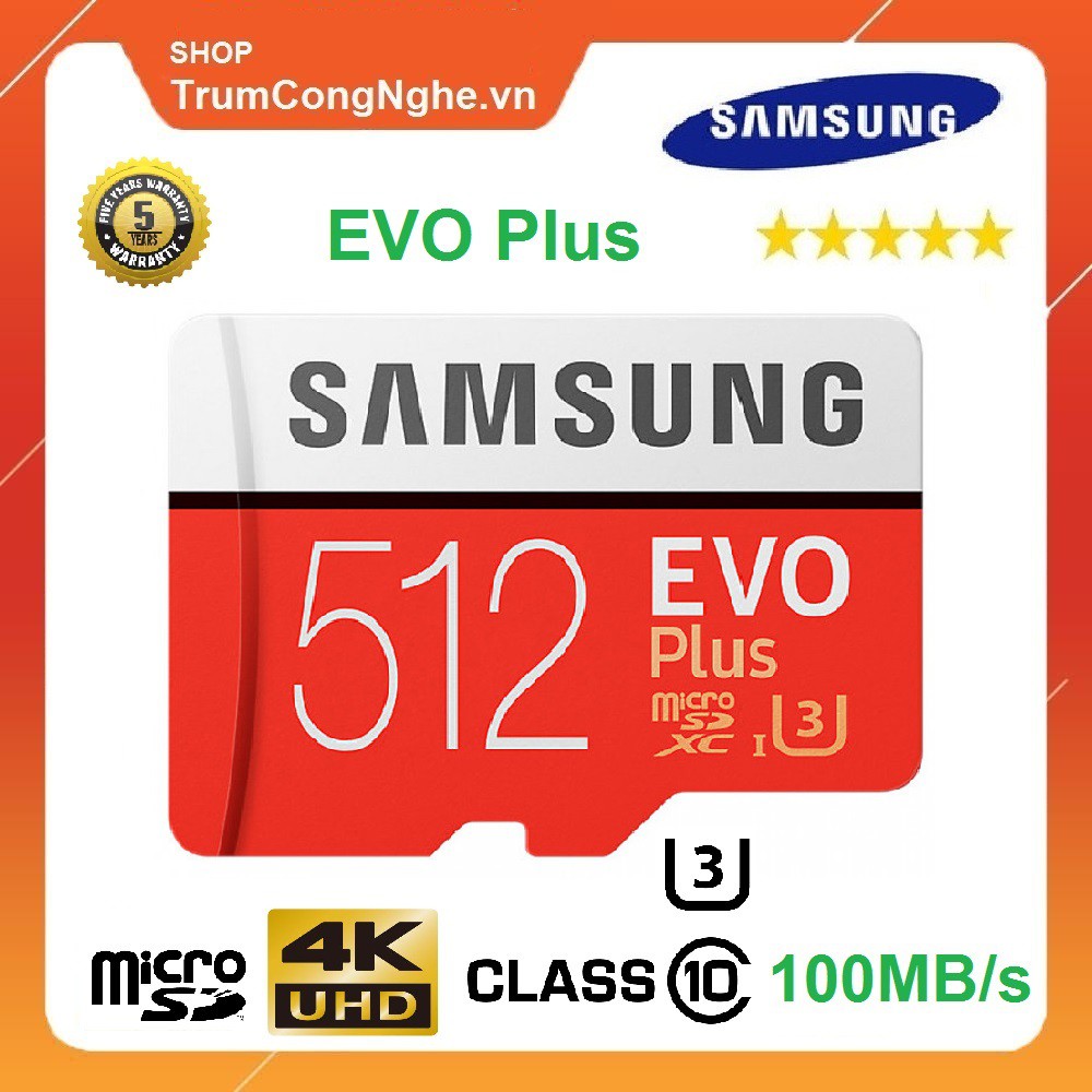 Thẻ Nhớ 512GB MicroSDXC Samsung EVO Plus Class10 U3 100MB/s Tốc độ Siêu Nhanh
