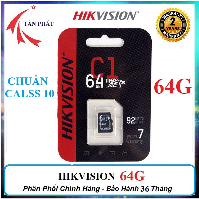 Điện Thoại & Phụ Kiện > Phụ kiện > Thẻ nhớ || Thẻ Nhớ 64G 128G 32G HIKVISION CLASS 10 Chất Lượng Cao Kèm Adapter - Chính Hãng - BẢO HÀNH 24 THÁNGCòn hàng