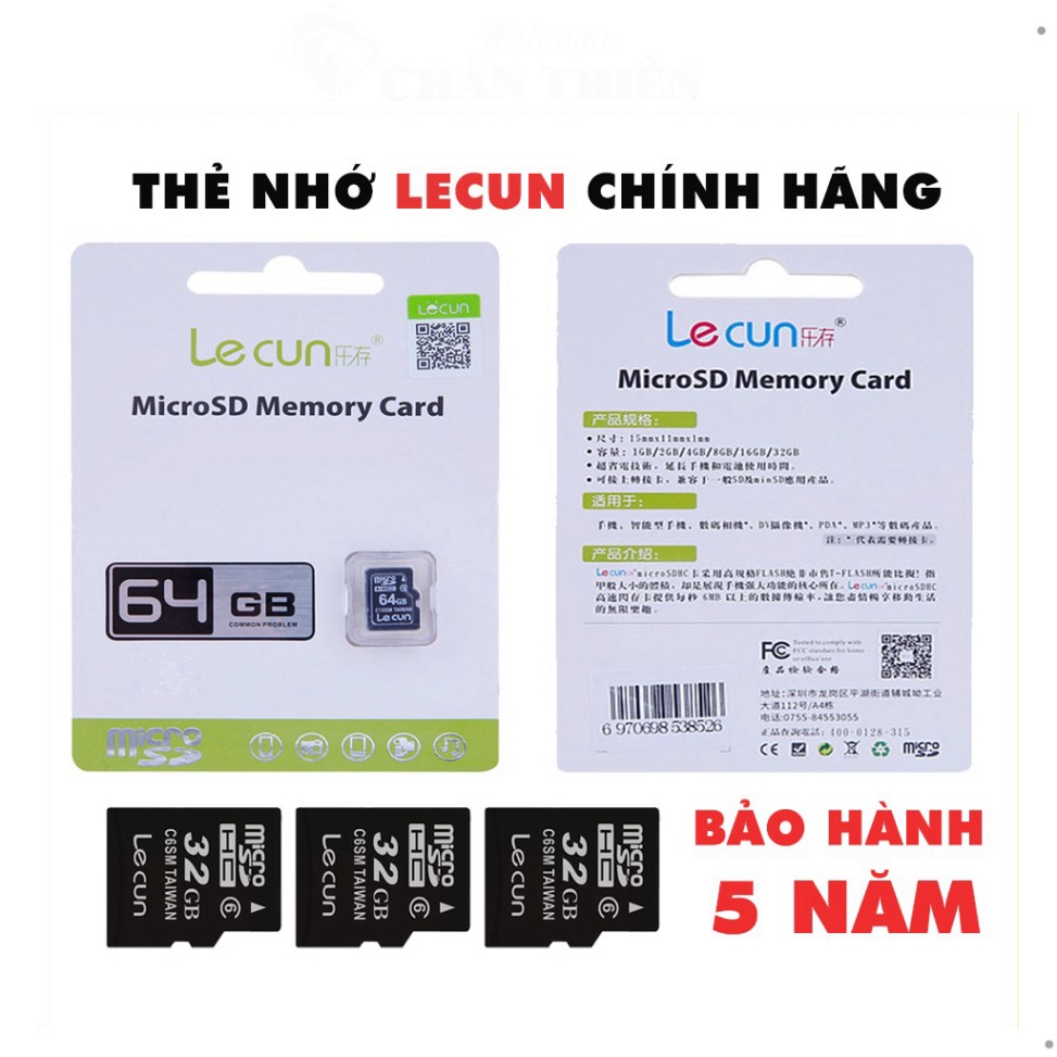 Điện Thoại & Phụ Kiện > Phụ kiện > Thẻ nhớ || Thẻ nhớ 64GB 32GB 16GB 8GB Lecun Micro SD chính hãng nhập khẩu BẢO HÀNH 5 NĂMCòn hàng