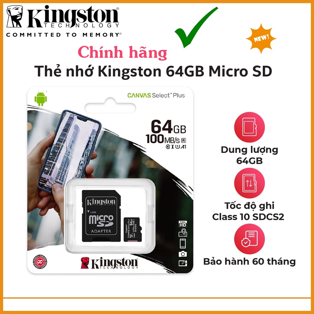 ✅Thẻ nhớ MicroSD Kingston 64GB, 32GB, 128GB: