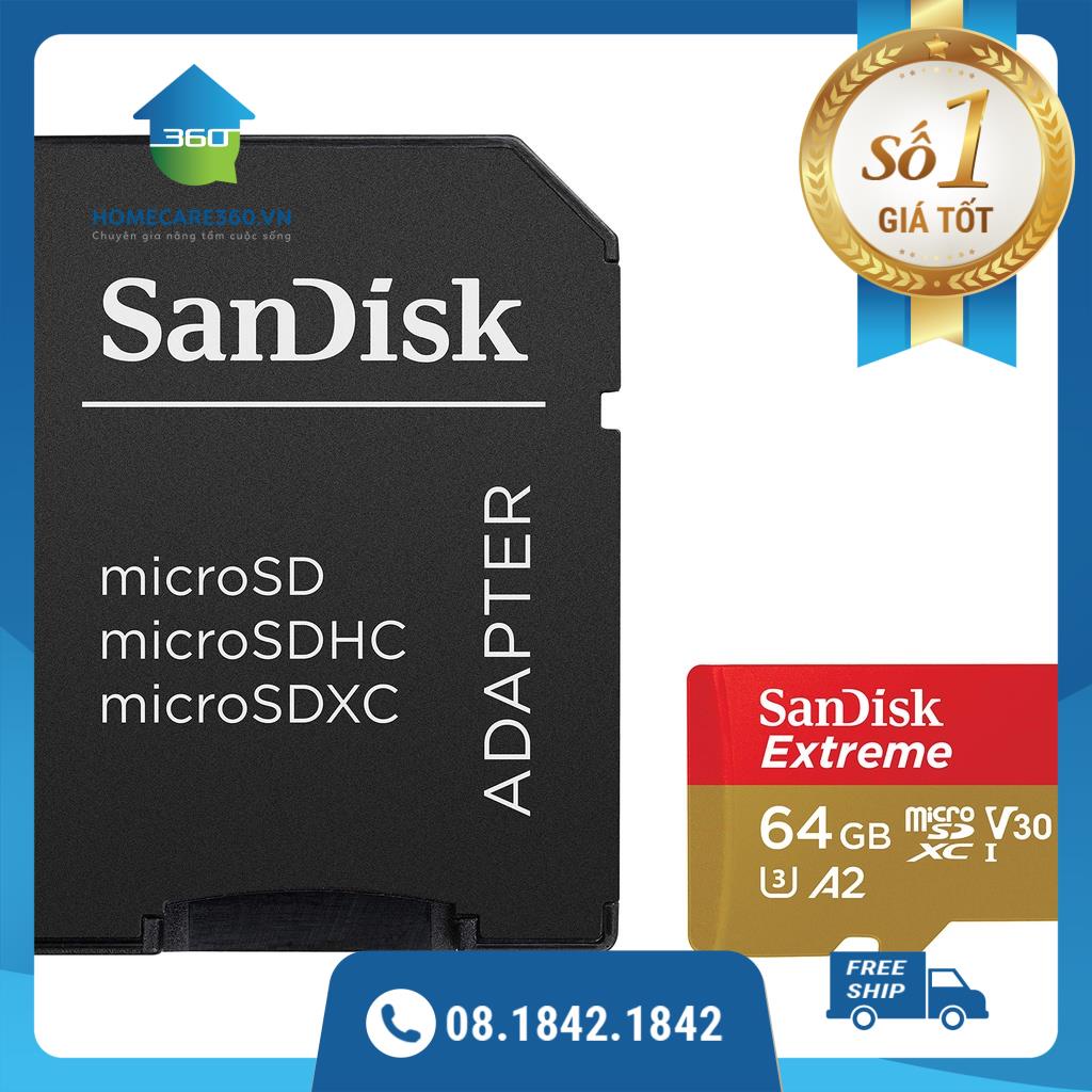 Điện Thoại & Phụ Kiện > Phụ kiện > Thẻ nhớ || Thẻ nhớ 64GB MicroSDXC Sandisk Extreme A2 160/60 MBsCòn hàng