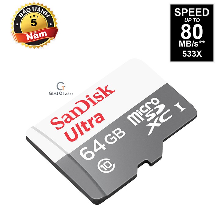 Thẻ nhớ 64Gb SanDisk Ultra Class 10 80Mb/s chính hãng-BH 5 năm